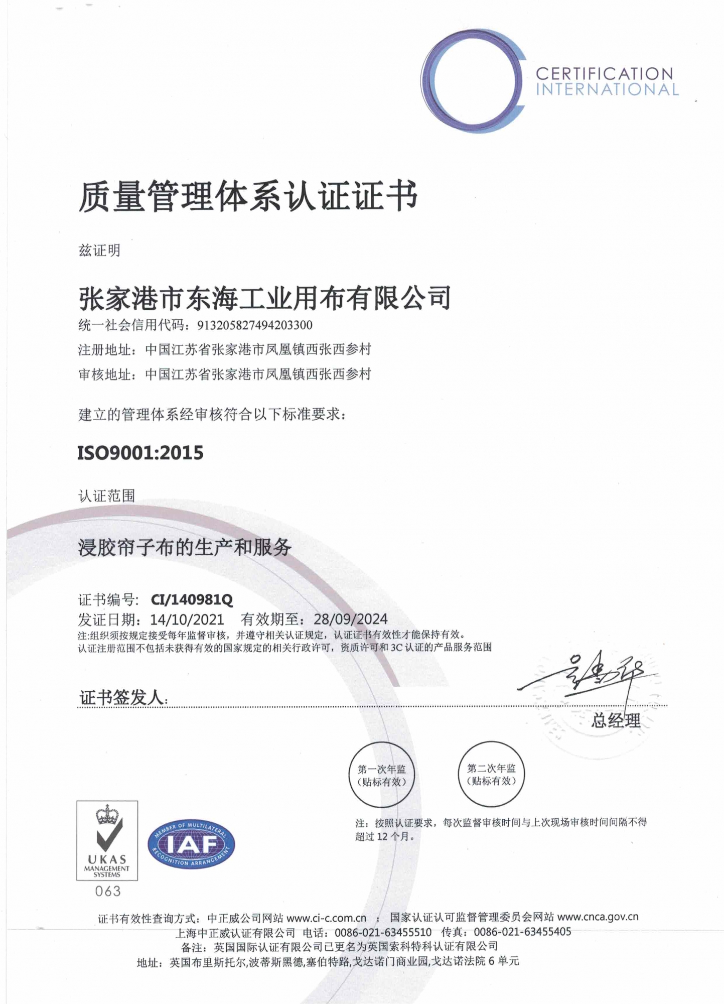 本公司是中國輪胎子口布國家標準的制定者之一,于2004年通過ISO—9001:2000質量體系認證,本公司嚴格按照日本輪胎生產質量保證體系組織產品的設計、開發、生產,公司員工定期進行各類培訓、教育及考核。公司的基本方針是確立并維持一貫的品質保證體系,提供客戶所期望的產品,嚴格遵守交貨期。